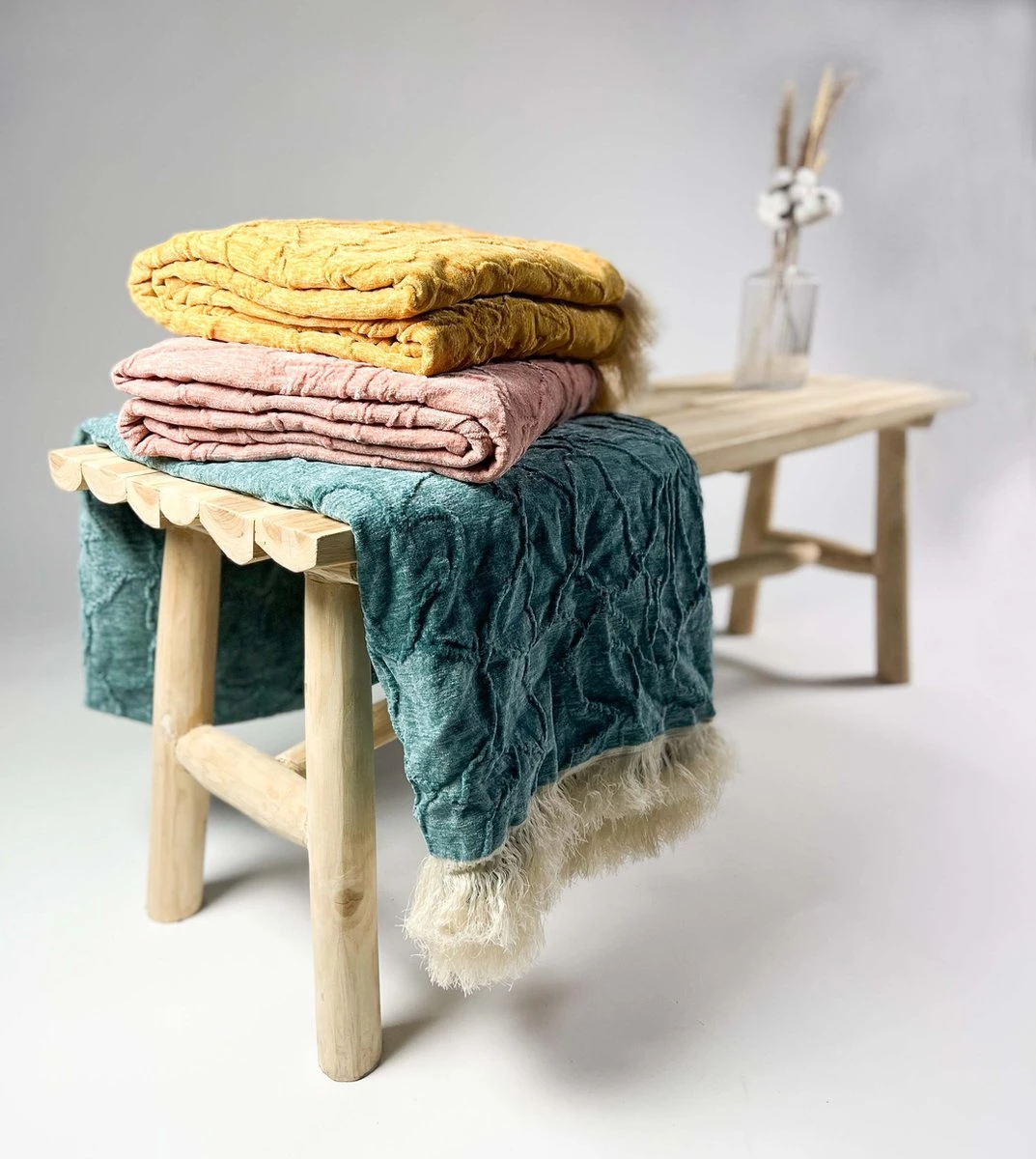 Plaid Florine heeft een mooie velvet look met franjes. Dit plaid met afmeting 140×180 cm in de kleur Muted Clay geeft sfeer aan je woning. De plaids van Dutch Decor kun je eindeloos combineren met de kussens van Dutch Decor.