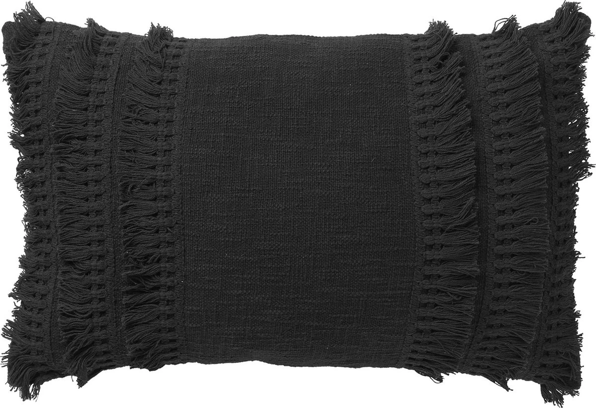 Sierkussen Fara is een mooi katoenen kussen met franjes. Dit sierkussen met afmeting 40×60 cm in de kleur Raven is een unikleur kussen van 100% katoen en is voorzien van een rits. Sierkussen Fara wordt geleverd met passend vulkussen.