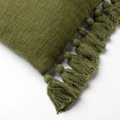 RUBY – Kussenhoes Katoen 45×45 Cm Chive – Groen – Met Flosjes – Exclusief Binnenkussen