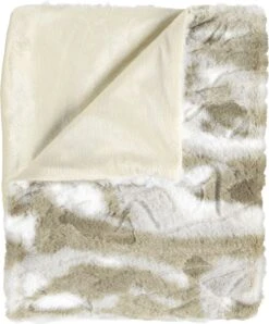 Dutch Decor – ROEL – Plaid Bontlook 130×170 Cm – Olijfgroen – Beige – Wit – Superzacht – Deken